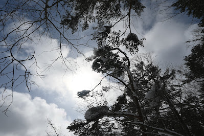 帰りはほとんど、遊歩道でなく、未開の樹林を彷徨して来たが、最後は、往路で見落とした青沼に寄って、スノーシュー彷徨は終了。